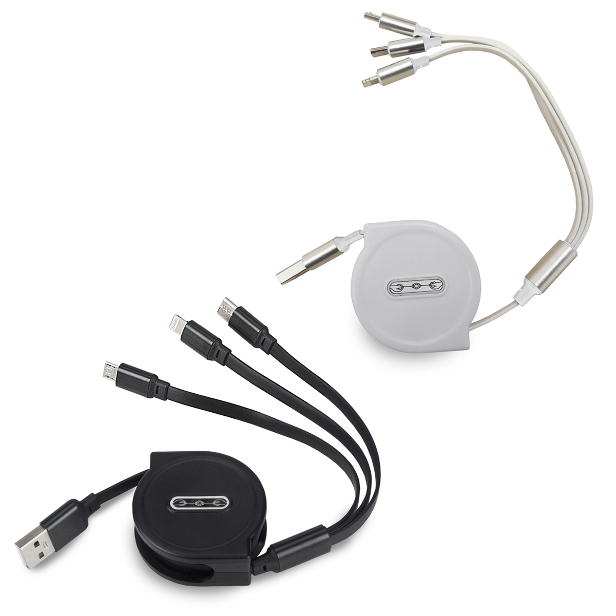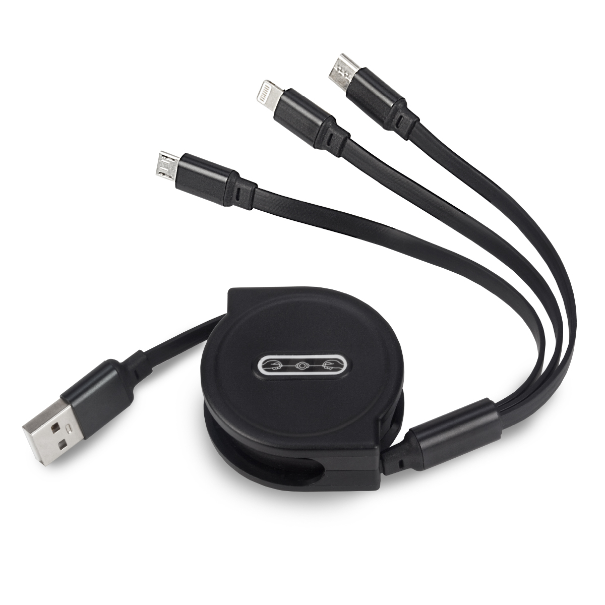 כבל טעינה מהירה כניסה: חיבור USB יציאה: Type-C, Lightning, Micro. אורך : 1.00 מטר מנגנון משיכה: קפיץ