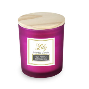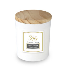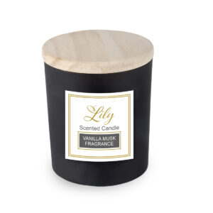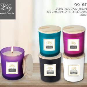 נר ריחני בכוס זכוכית עם מכסה במבוק – לילי