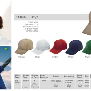 כובע מצחיה בד: כותנה סרוקה פס הזעה: כותנה דגם: סגירת וולקרו מספר חלקים: 6 מצחיה: מעוגלת, סנדוויץ מידה: 58 ס"מ